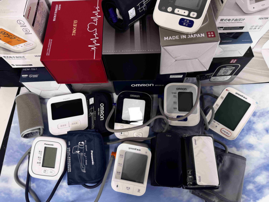 (图片展示了我们测试过的一些血压计机型)