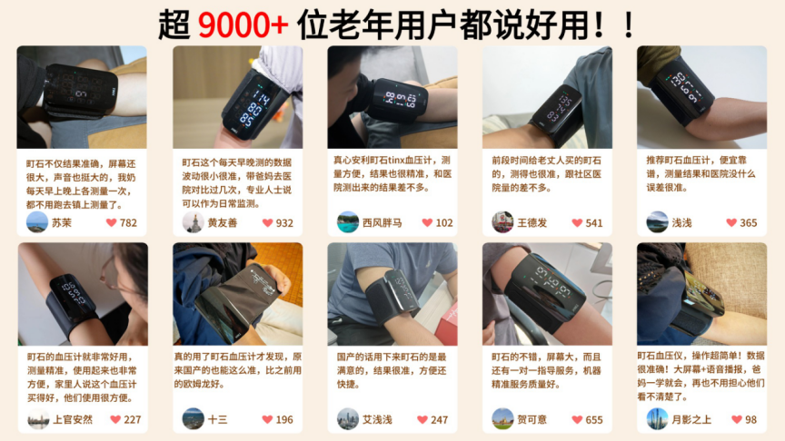 低调专注研发,是町石的标签。它深耕血压计领域多年,将50%预算都用于技术创新,团队累计投入超过10万小时打磨血压计,产品还通过5年抗衰减认证。即便长期使用,也能保持精准测量,不会像其他血压计那样出现误差波动大。