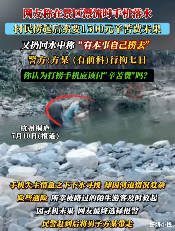 从这件事看出,村民冒险下河捞手机,失主给一些“辛苦费”无可厚非。但是问题在于,事先谈好的是1000元,又临时加价到1500元。