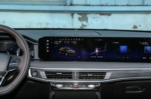 车机和科技配置方面,这款车搭载高通骁龙8155芯片,运算速度快,日常操作车机功能时流畅顺滑,即便同时打开多个功能,也不会出现卡顿、延迟的情况,使用体验出色。中控台配备27英寸悬浮式高清大屏,显示效果清晰,操作逻辑简单易懂,老人和小孩也能快速上手;方向盘前方是12.3英寸全液晶仪表盘,能清晰显示车速、油耗、导航等多种车辆信息,查看起来方便快捷,不用低头寻找相关数据,提升驾驶安全性。