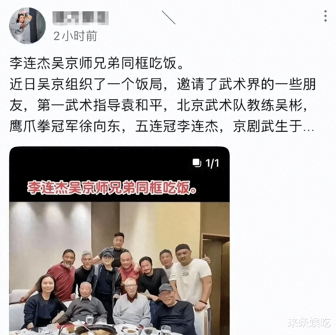 要说娱乐圈里的功夫明星,成龙李连杰和吴京都是鼎鼎大名的人物,都非常拼,而近日吴京和李连杰也再度惊喜同框,私下聚会,据悉62岁的李连杰将复出参演电影《镖人》,那么李连杰现在状态如何呢?