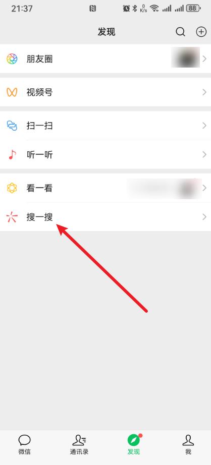 ①打开我们的微信,然后在“发现页”中点击【搜一搜】功能;