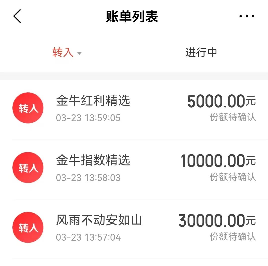 考虑到今天股市跌幅达到2.5%~5%,黄金跌幅超过5%,成本已拉开差距,我买了点金牛系列组合。考虑到我的红利组合持仓今天会转亏,所以这次额外补了红利。