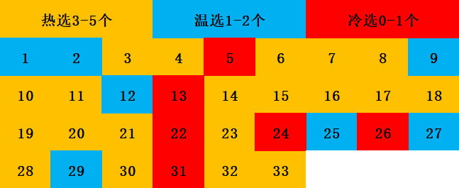 通常情况下热号3-5个,温号1-2个,冷号0-1个。