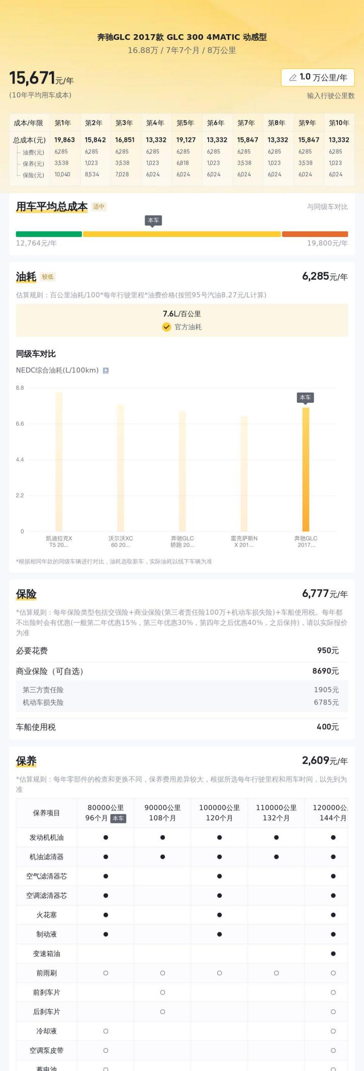 当然,购买二手车也要考虑用车成本。奔驰GLC的油耗相对较高,百公里综合油耗大约在9-10L左右。按照一年2万公里计算,每年的油费大约在1.8万-2万元左右。此外,保险费用、保养费用以及一些其他的维修费用,也是一笔不小的开支。因此,在购买之前,要做好充分的预算,确保自己能够承担后续的用车成本。