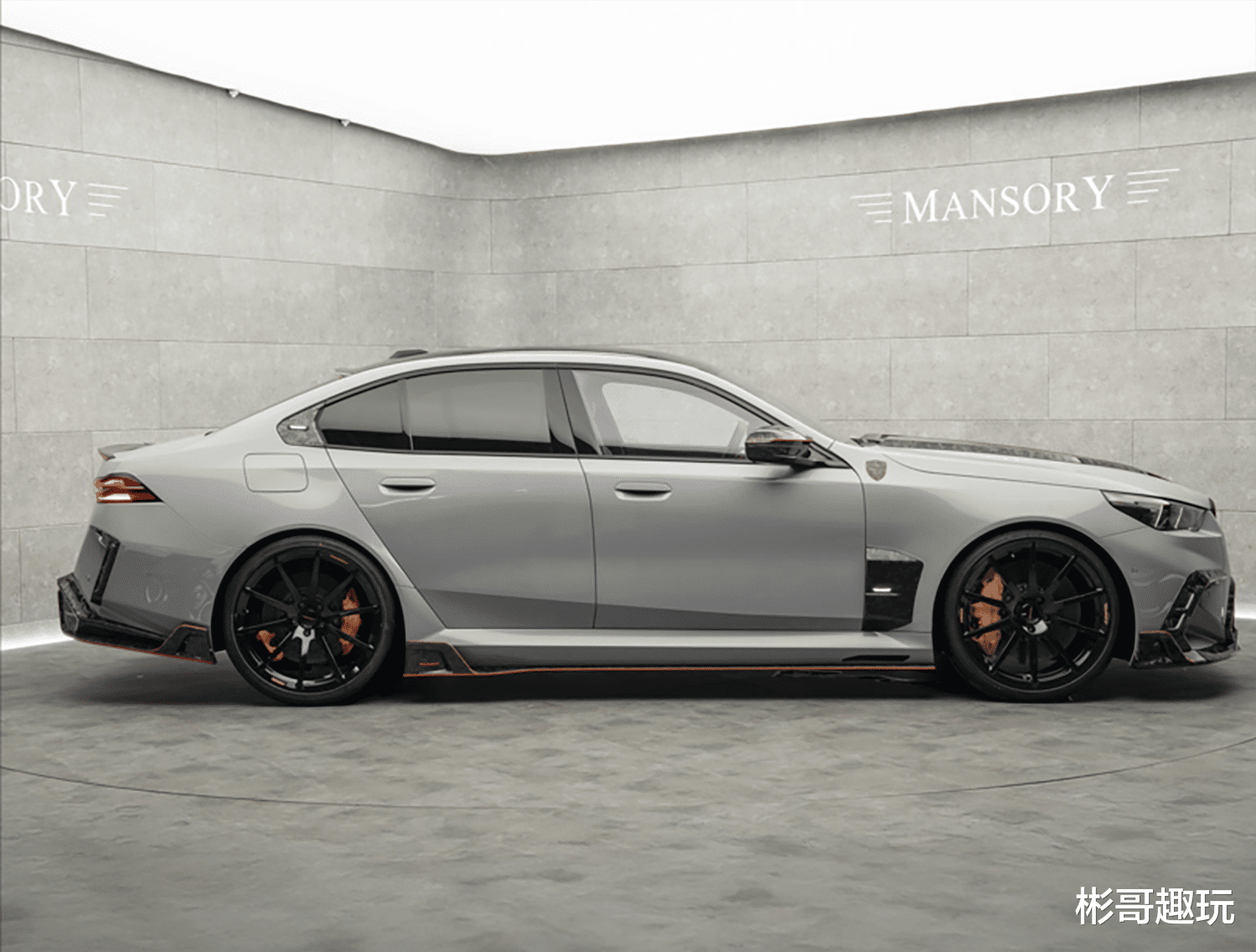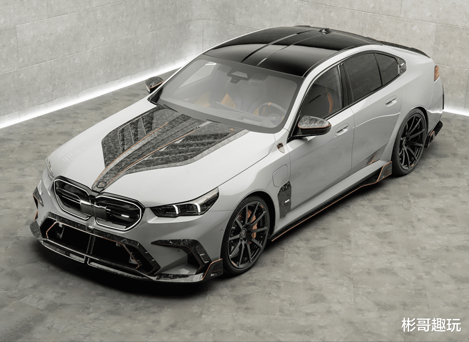 外观方面,这款经过 Mansory 改装的宝马 M5 充满了惊艳与霸气。前脸部分,大面积的碳纤维前唇格外引人注目,它不仅在视觉上拉低了车头,更在车辆行驶时能有效导流空气,提升前桥下压力,为高速行驶提供更出色的稳定性。重新设计的碳纤维引擎盖隆起明显的线条,彰显着强大的动力性能,与前脸的碳纤维进气口相呼应,超大进气口造型显得更加犀利,不仅优化了空气动力学性能,还为车辆的散热系统提供了更高效的空气流通路径。