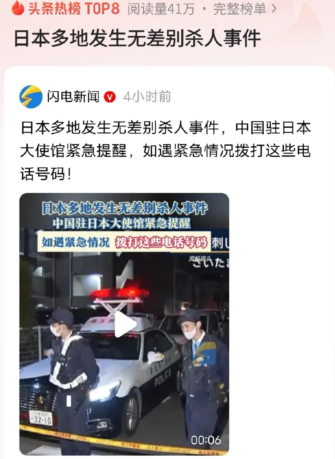 2024 年 12 月以来的治安恶化浪潮,已波及福冈、长野、岐阜等九个都道府县。作案者不再局限于特定场所,从商业街到居民区,从车站广场到学校周边,随机选择的作案对象让普通市民防不胜防。值得注意的是,近两周东京新宿区、埼玉市等地针对年轻女性的凶杀案,显示出犯罪模式正在向特定群体聚焦。这种演变与 2001 年池田小学惨案形成危险呼应,昭示着日本社会暴力犯罪正在突破历史安全阈值。