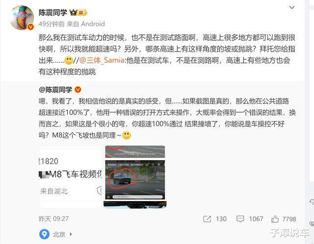 结果,陈震也来凑热闹了,直接指出颜宇鹏在公共道路上超速接近100%,这操作,怕是得出一个错误的结论。你品,你细品,这话说得可够直接的。