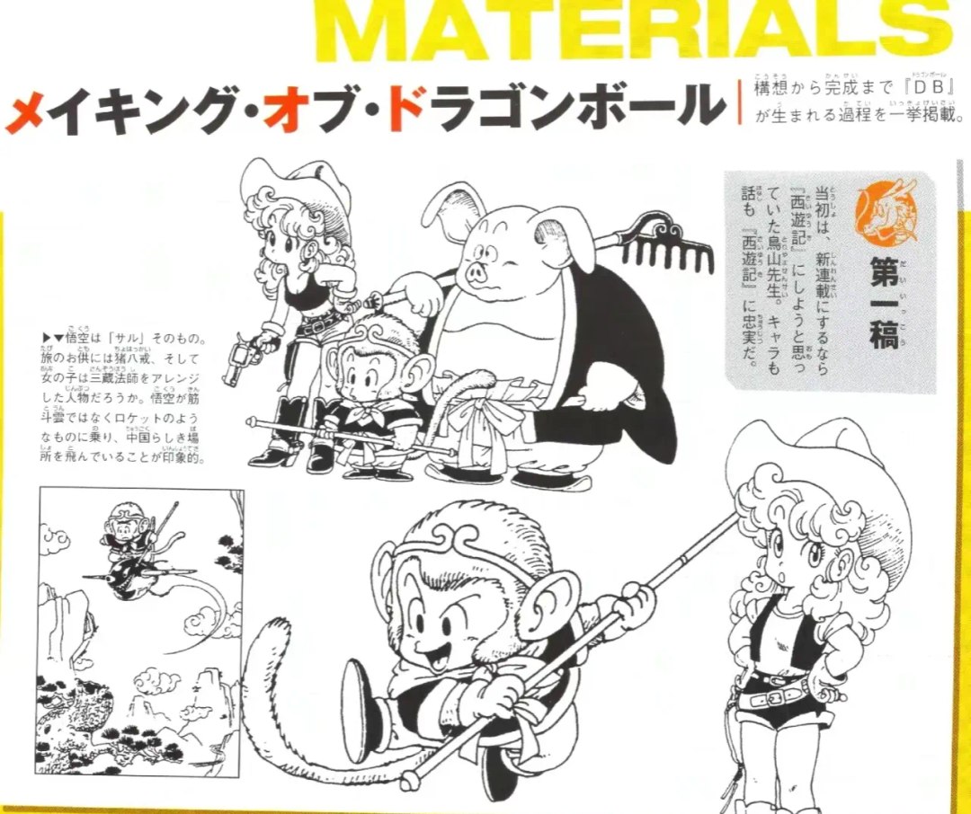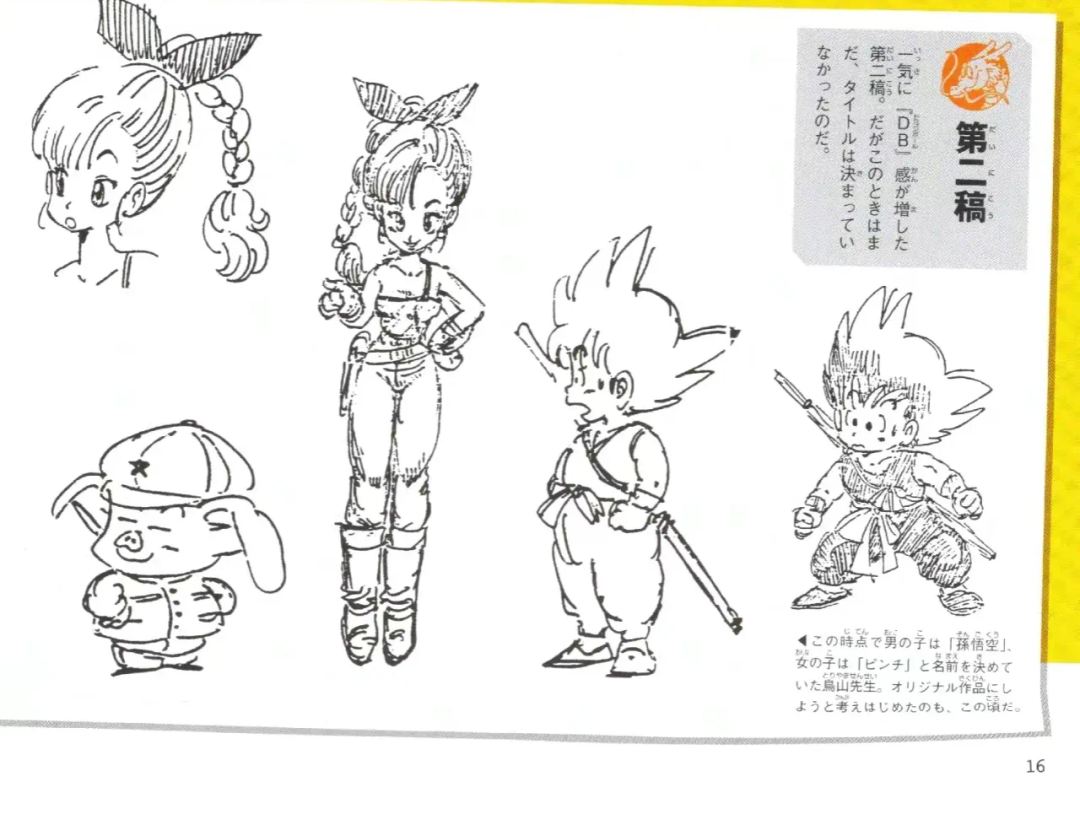 经过了再三修改,到了第二稿中,孙悟空就变成了我们所熟悉的形象,乌龙变小,女主角也换成了布尔玛。