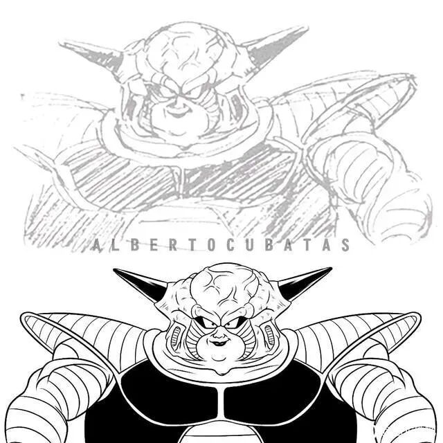 弗利萨的第三形态在一定程度上参考了异形,但是第一形态出现了形形色色的原稿。原稿中的弗利萨高低不同,胖瘦不一。