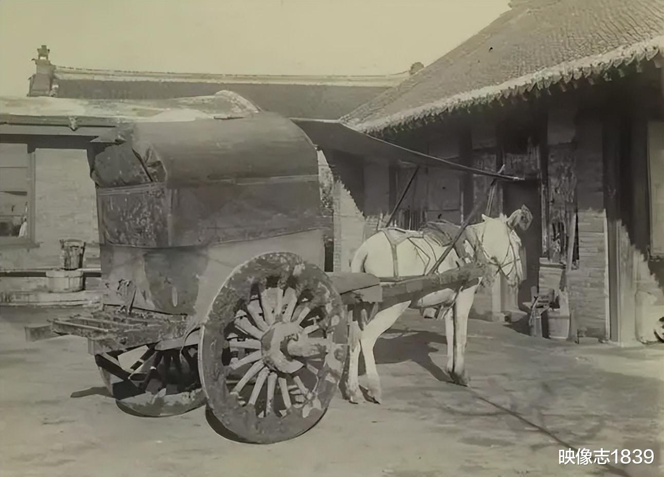 清朝的农村,不必说没有汽车,连个黄包车也没有。地主出行时的“出租车”,就是照片中的这种传统马车。