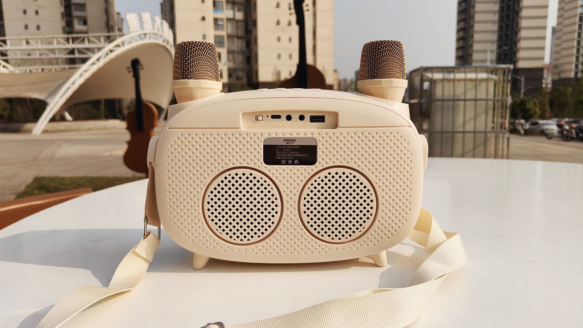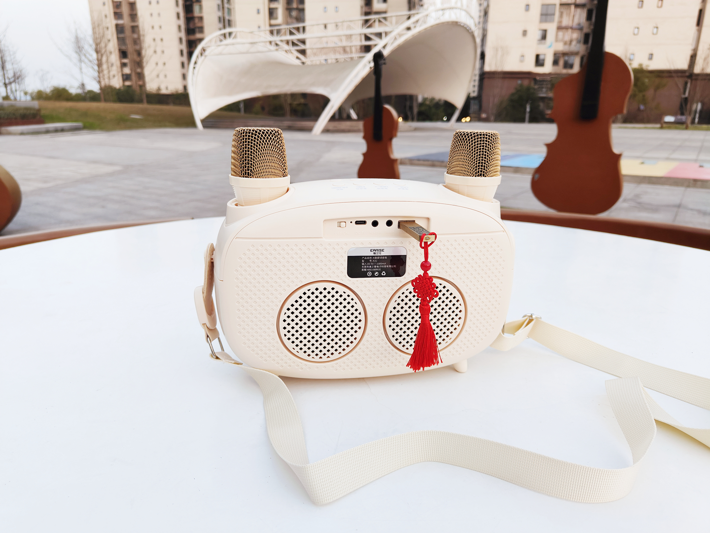 雅兰仕K歌提词音箱还贴心设计了背带,外出携带超方便。