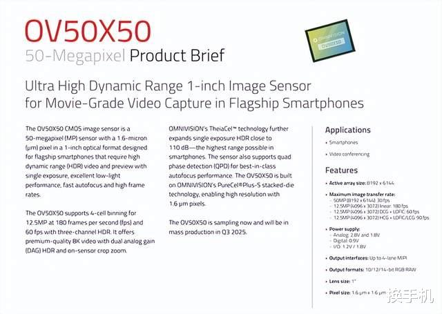 根据产业链消息,华为有望推出首发搭载OV50X传感器的智能手机。小米、vivo、OPPO等国内头部厂商也将在其2025年下半年发布的旗舰机型中采用这款传感器。