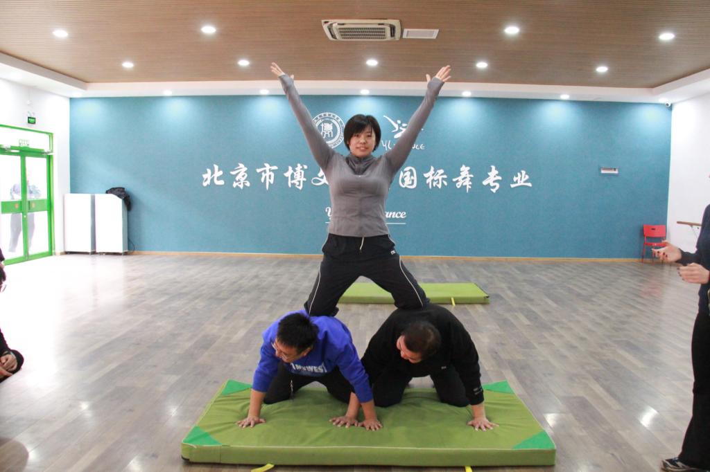 实操演练环节,参培教师身着运动服、脚穿运动鞋,在王晶老师的细致指导与雒雅晨助教的辅助纠错下,逐节打磨动作、规范姿态,针对叠罗汉等配合类动作,反复演练保护措施与协作流程。