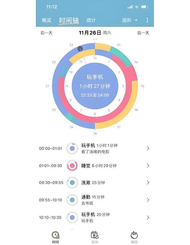 推荐采用柳比歇夫在《奇特的一生》中的时间记录方法,即记录每件事的开始和结束时间(日期 + 事件 + 时间),不求精准但要坚持记录,以周、月、季度为周期进行统计、分析和复盘,从而明确时间的流向,发现问题并做出改进。“爱时间” APP是个不错的工具,它能根据记录自动生成统计图表,直观呈现时间分配情况。