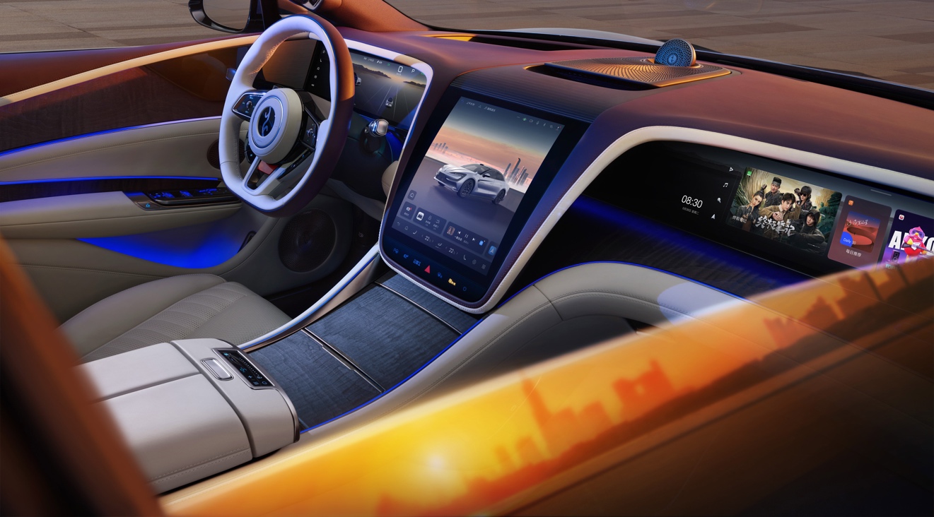 内饰则延续“对称之美”的东方传统,云锦红与珠缎白两种配色,分别以南京云锦的华贵与珠玉的莹润为灵感。23个丹拿铂金证据系列扬声器,配合旋转升降的“丹拿星旋”高音单元,将车内音场提升至百万级家用音响水准。四座版车型更以紫气东来点缀细节,将中式豪华的仪式感拉满。