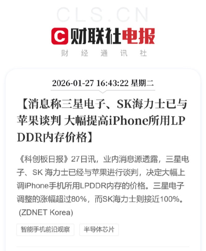 最近数码圈最让人咋舌的消息,莫过于供应链传来的“涨价风暴”。业内消息透露,三星电子、SK海力士已经与苹果进行谈判,决定大幅上调iPhone手机所用LPDDR内存的价格。三星电子调整的涨幅超过80%,而SK海力士更加接近100%。这一成本的剧烈波动,直接让原本就扑朔迷离的“iPhone Fold”蒙上了一层金钱的阴影。
