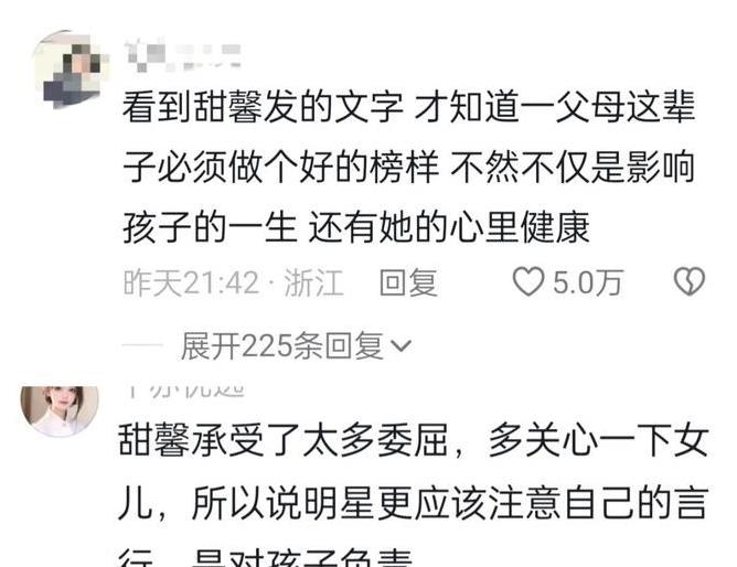 试问,如果没有这次的风波,甜馨又怎么会站出来跟大家说那些无心之言呢?所有的评论区里的话,似乎都将娱乐圈的戏剧性推进到另一个层次:李小璐的悲剧,是甜馨成长过程中的一部分,而这份成长,或许也是她真正开始理解娱乐圈这个世界的关键所在。