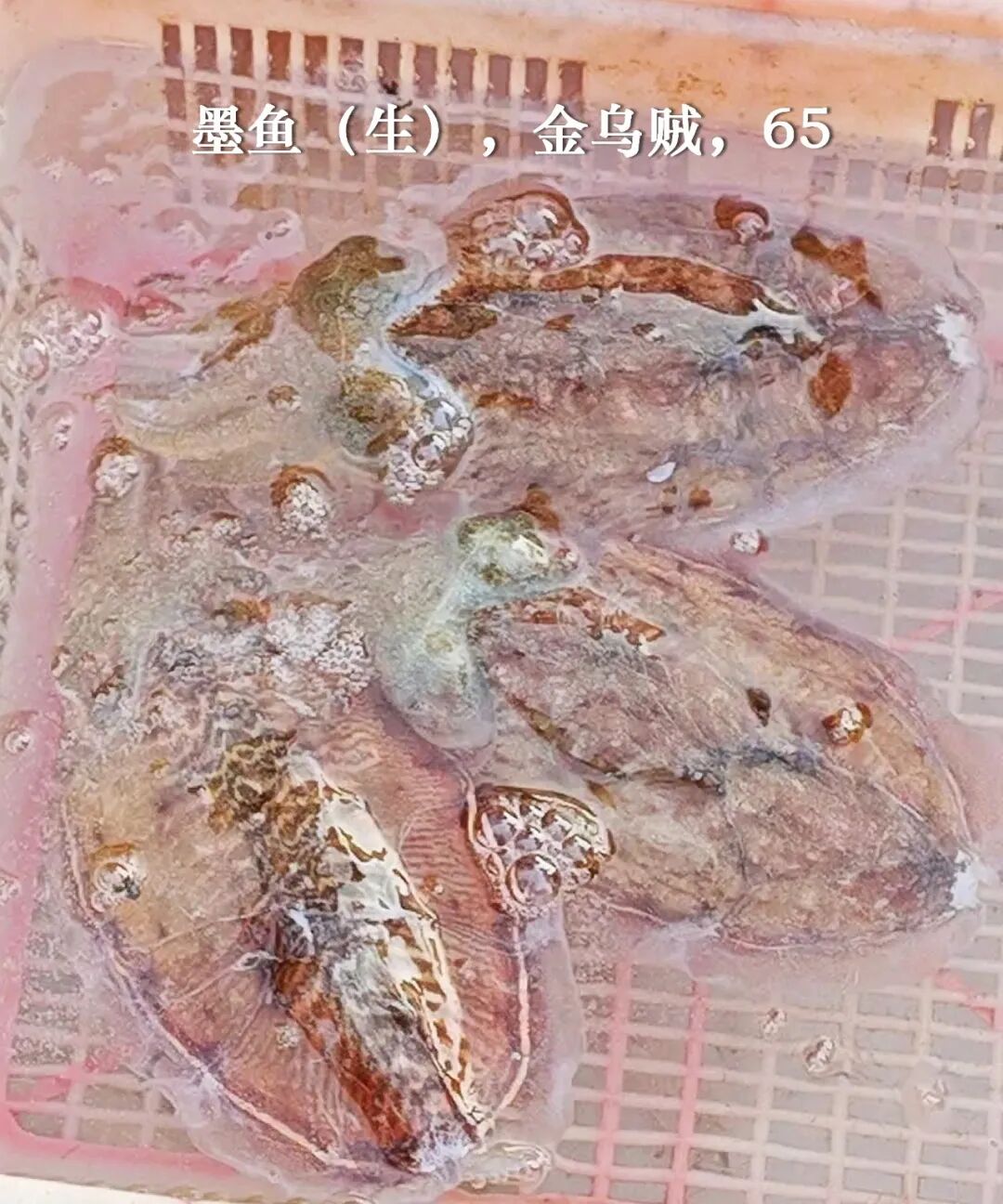 1、墨鱼(生),65元/斤,这是金乌贼,做刺身不错,熟食没必要买生的。