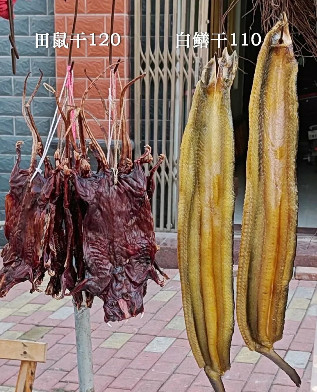 2、白鳝干,110元/斤,右边是便宜的非洲鳗鲡或欧洲鳗鲡晒的,肥。