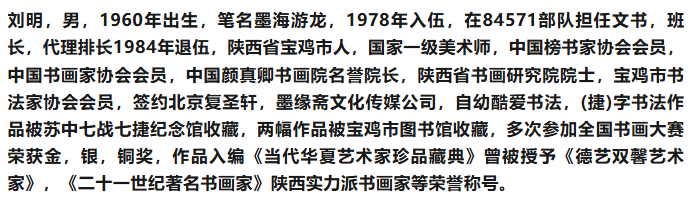 纵观刘明老师的书法艺术,四十余年的深耕,使其在技法上臻于完善,在境界上不断升华。他以传统为根,以笔墨为媒,以性情为魂,将碑帖的骨力、文人的雅韵与时代的气息相融,形成了雄浑洒脱、刚柔并济的个人风格。其作品中,既有技法的精妙考究,又有精神的高远追求;既有文化的深厚积淀,又有情怀的真挚表达。在当代书坛,这样的作品无疑具有极高的艺术价值与收藏意义,更为传统书法艺术的传承与创新提供了有益的启示——唯有坚守根脉、深耕不辍,方能让笔墨之花在时代土壤中绽放出永恒的光彩。而刘明老师对书道的赤诚与对初心的坚守,也将激励更多后来者在传统艺术的道路上步履不停,薪火相传。