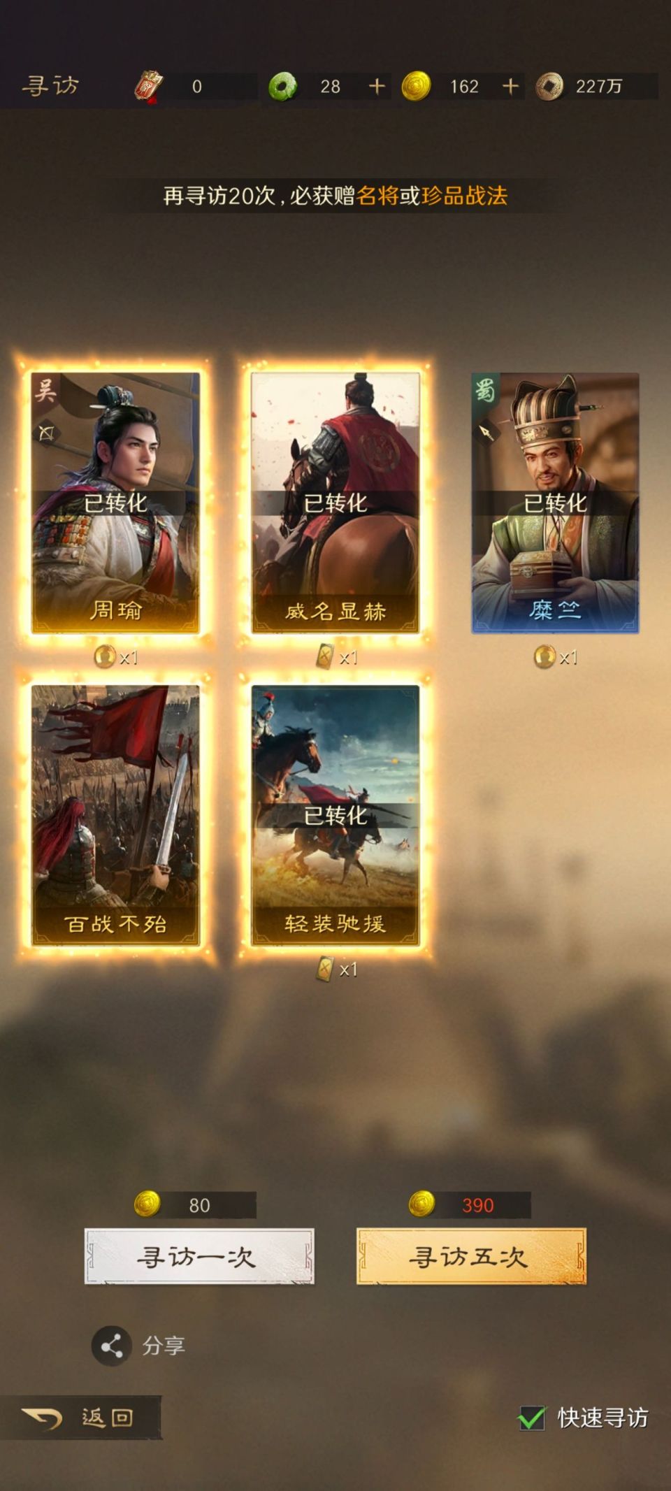 游戏独创的武将置换系统更是策略混搭的强力后盾,等级和战法可以免费重置,让你大胆尝试各种组合而无后顾之忧。自动铺路、主城资源地、练兵所自动升级等功能,大幅降低操作负担,让你有更多精力研究战术。抽卡系统堪称业界良心,8%的橙卡概率和20抽保底机制,加上登录七天赠送的125抽,让每个玩家都能轻松获得心仪武将。解锁战法槽和韬略仅需铜币,无需消耗同名卡,彻底告别“氪金抽卡”的烦恼。