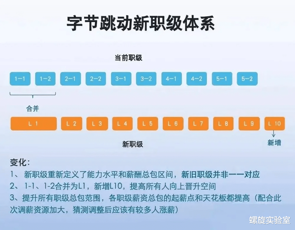 近期宣布全员涨薪的字节,也将原有的5级10档职级体系扩展为10级体系,希望能够解决“人才通胀”,为员工提供了更广阔的涨薪空间。