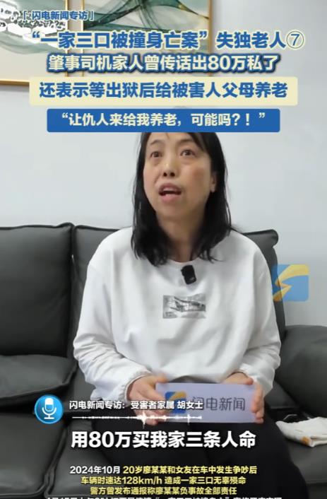 对于胡先生母亲的发言,很多网友都表示支持,毕竟儿子一家都没有,就算对方给赔偿,又有什么用呢?再多的钱也换不回三条人命,更何况对方还那么的嚣张。
