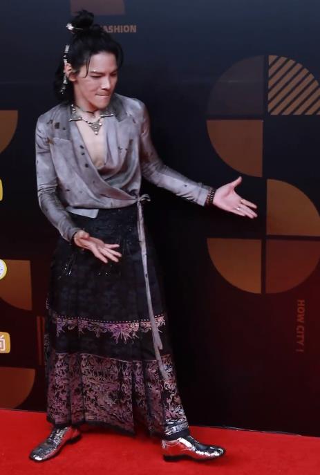 更辣眼睛的是,他的上衣还开着深V,露着胸肌。
