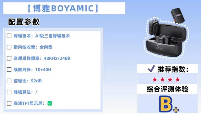作为博雅入门迷你款,以轻量化设计降低创作门槛。核心亮点在于小巧机身与基础性能:搭载微型高灵敏咪头+基础降噪算法,能过滤轻微环境杂音,人声还原清晰自然,48kHz/16Bit采样率满足日常记录需求。传输采用2.4G稳定频段,80米可视距离内连接流畅,延迟低于40ms,日常拍摄无压力。机身重量仅4克,磁吸式佩戴可贴在衣领、书本上,隐形不突兀。续航方面,发射器单次续航5小时,充电盒总续航15小时,Type-C接口充电便捷。即插即用,兼容主流手机与入门相机,无需复杂设置,配件含收纳袋,便携性拉满,是学生与轻量化创作者的实用之选。