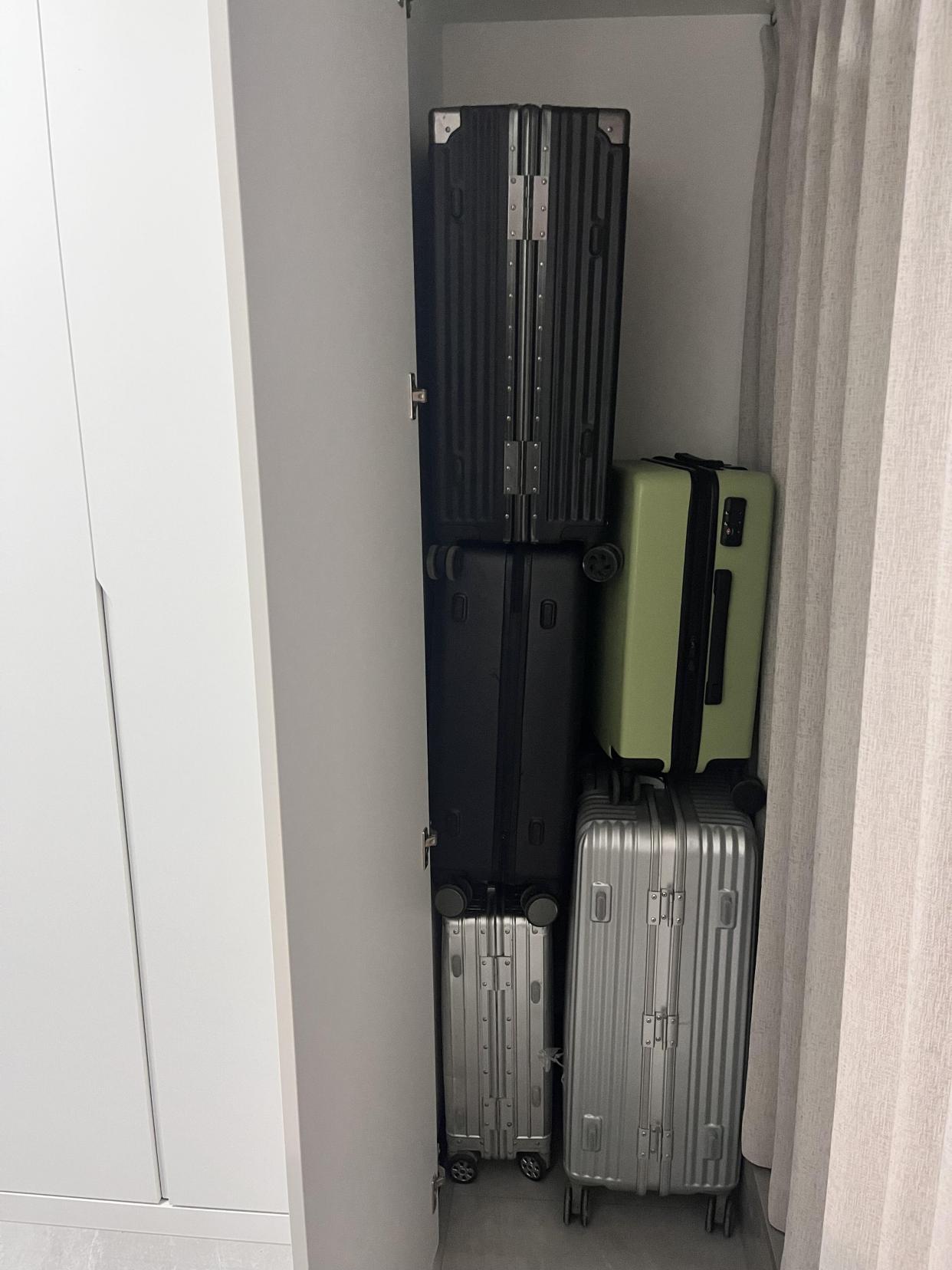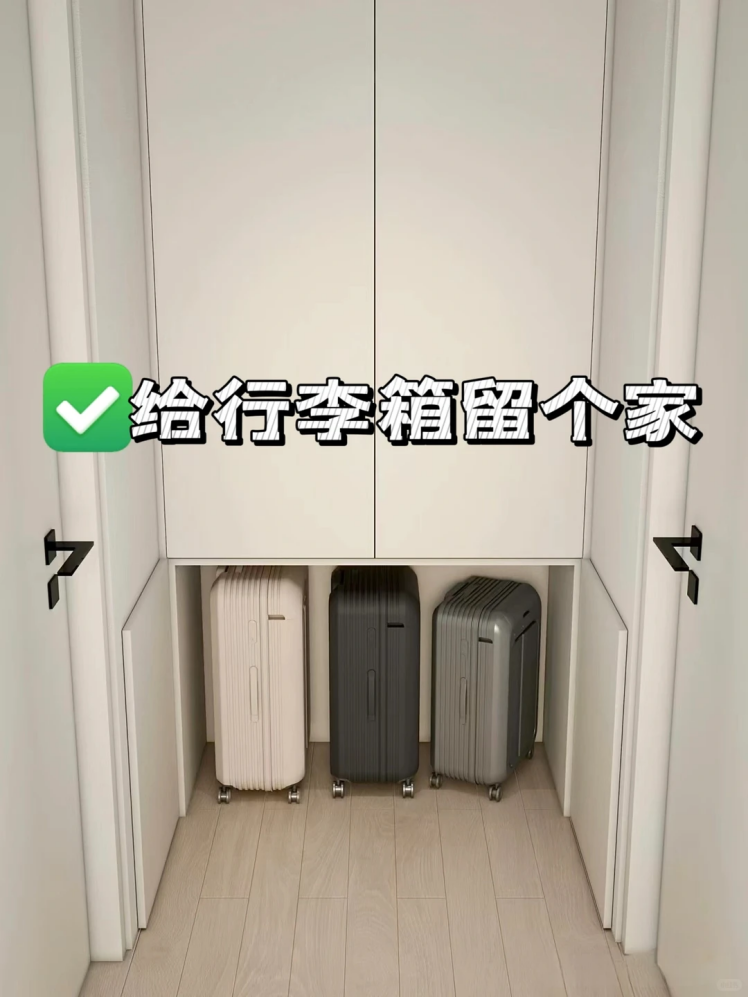 如果有好几个行李箱,可以专门留出一格柜子,摞着放,更省地。