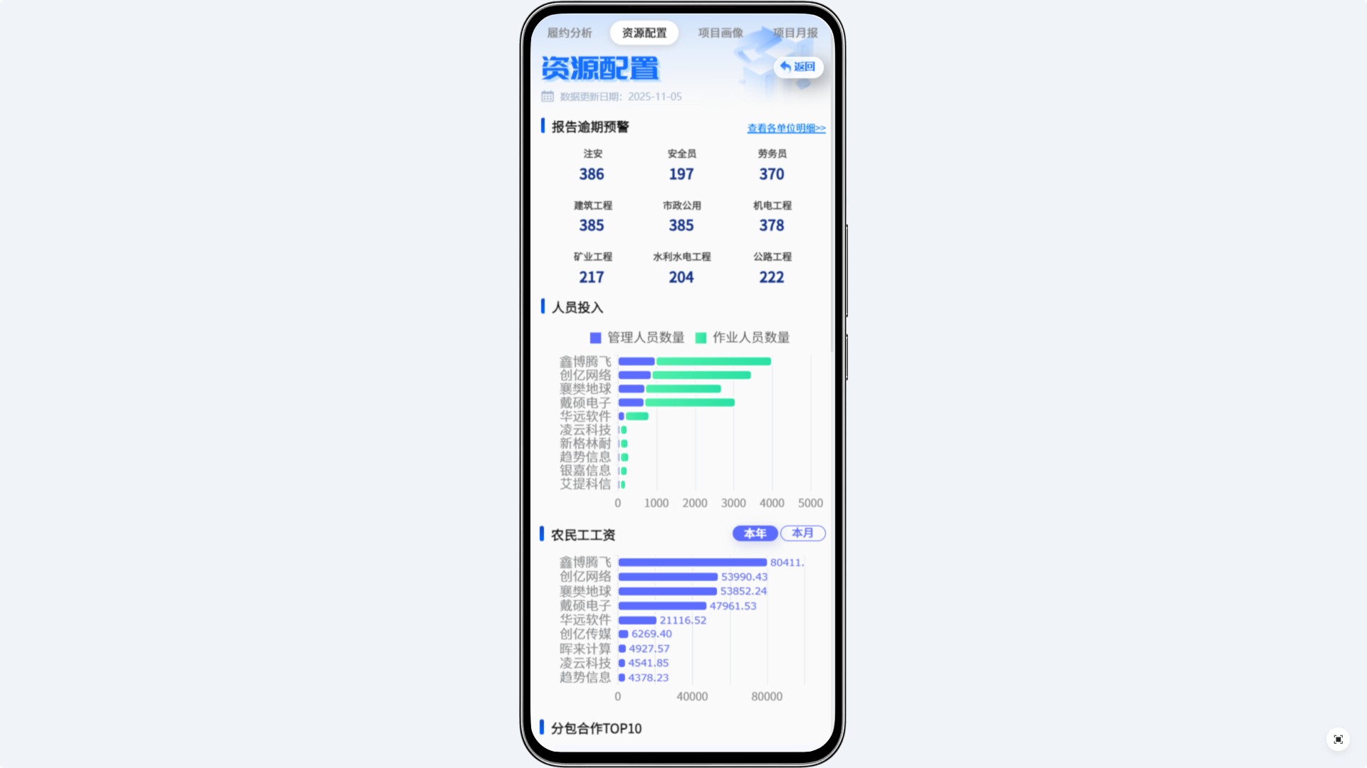 还有农民工工资监控,这可是防控风险的重点。工作台会跟踪各个公司每个月和今年以来的工资发放情况,有没有拖欠、发放是否及时,都能随时看。