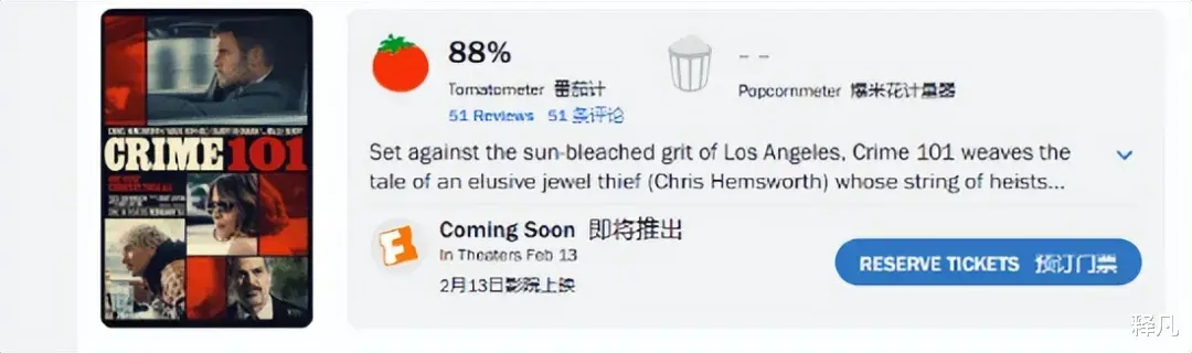 烂番茄88%好评,IMDB7.1,同迈克尔·曼导演的《盗火线》风格很像,还有些影评家直接说它是“侠盗猎车手GTA系列最棒的真人电影”。