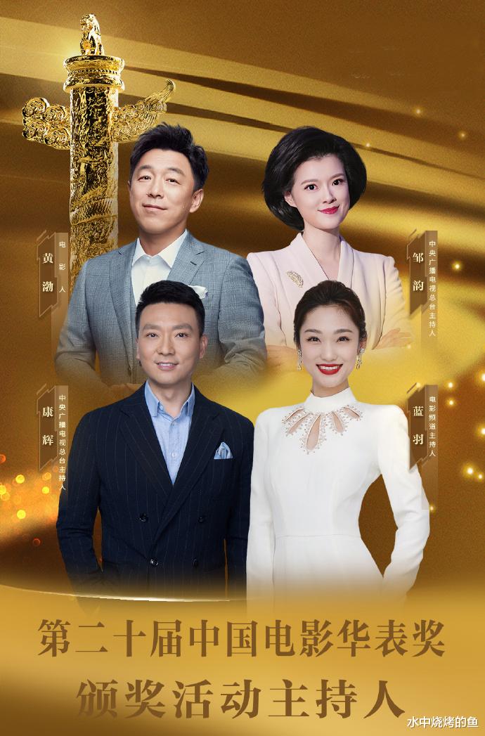 看得出来,主办方非常重视这一次的活动,主持人选上直接派出了“国家队”级别的选手,由央视主持人康辉、邹韵、演员黄渤以及电影频道主持蓝羽主持强大的主持团,整个颁奖典礼的规格一下子就提升了。