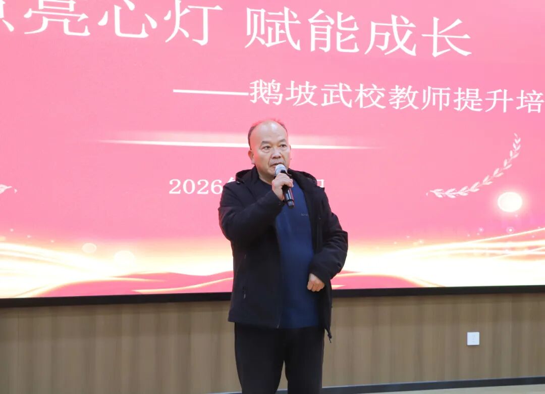 1月5日上午,鹅坡武校阶梯教室内洋溢着浓厚的学术氛围,一场以“点亮心灯 赋能成长”为主题的教师提升培训正式拉开帷幕。学校全体教师齐聚一堂,共同开启这场聚焦专业成长与教育理念革新的学习之旅。