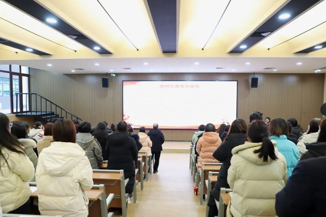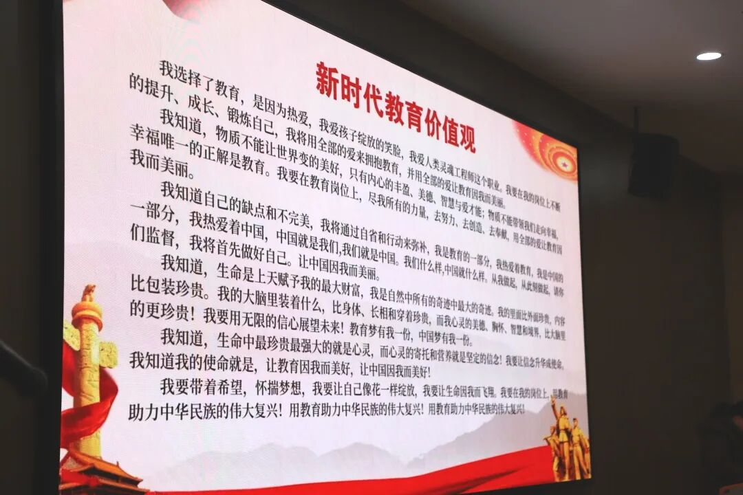 培训伊始,全体教师肃然起立,齐声诵读新时代教育价值观。铿锵有力的诵读声在会场回荡,这不仅是一次庄严的仪式,更是对教育初心与使命的集体重温,为整个培训奠定了崇高而肃穆的基调。