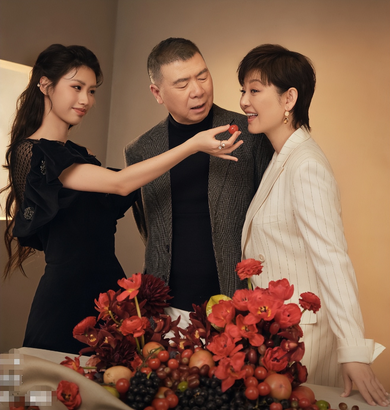 人家一家三口同框时,画面那么和谐,徐朵安安静静站在爸妈身边,拍照时还贴心给徐女士喂水果,