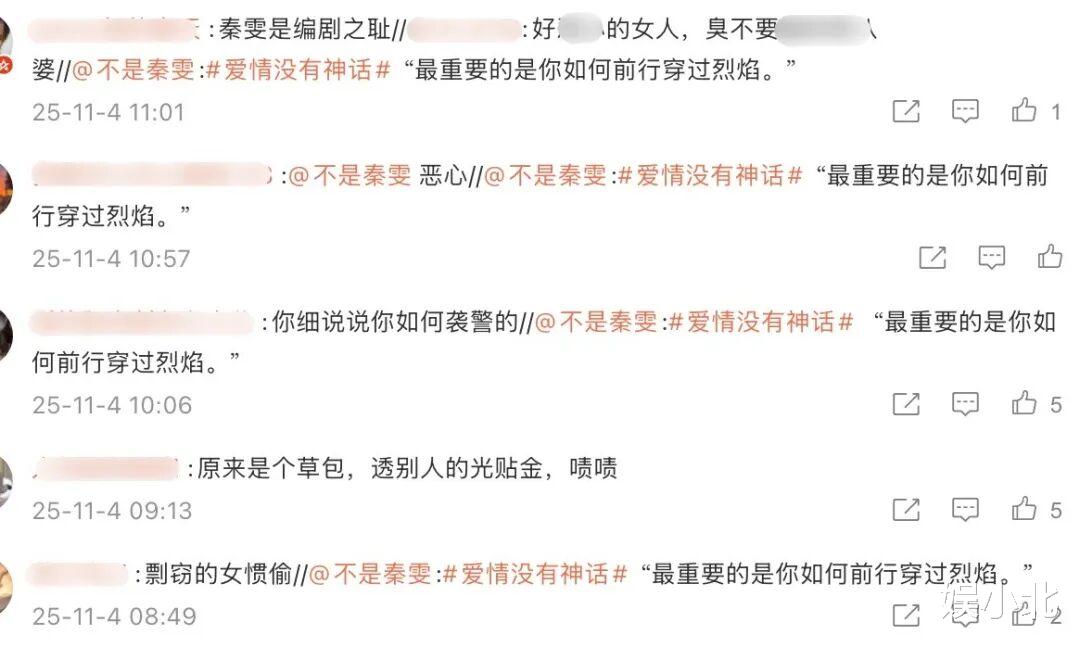 不是“秦雯是编剧之耻”,就是“剽窃的女惯偷”,还有“抵制秦雯的电视剧”,甚至有更多辱骂的话语。