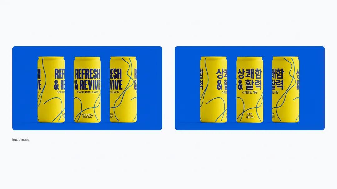就比如将饮料瓶上的英文翻译成韩语,并且无缝的合成在原文字的位置,还能保证超高质量的细节和字体风格。