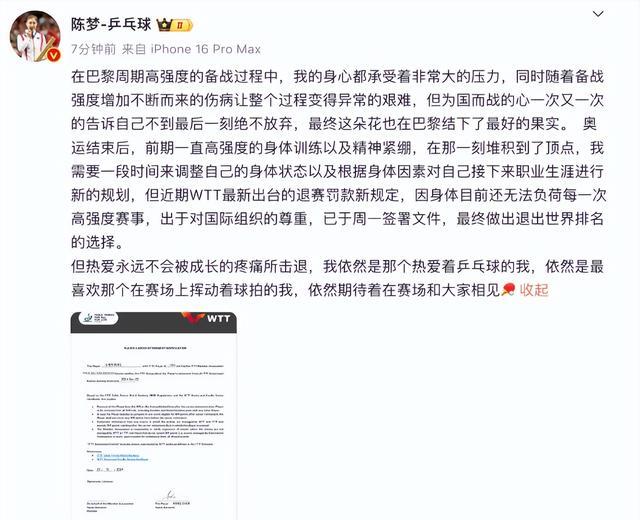 自从去年巴黎奥运会结束之后,两人一前一后退出WTT世界排名,球场上就再也没见到樊振东和陈梦的身影了,让许多网友都感到十分惋惜。