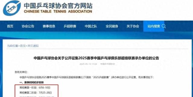 据5月13日中国乒乓球协会发布的公告,“2025乒超联赛”将于6月6日——10日开始常规赛的第一阶段,这也就是我们最早可能在6月6号就能看到小胖了。