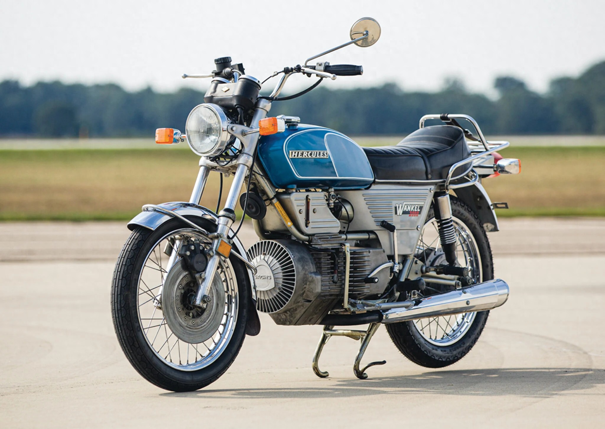Hercules W‑2000是全球首款量产转子发动机摩托车,由德国Hercules公司于1974–1977年间制造,是将Fichtel & Sachs单转子设计应用于两轮载具的开创之作。该车总产量约1,800辆,在当时虽技术前卫,但因成本和性能权衡,未能获得商业成功。