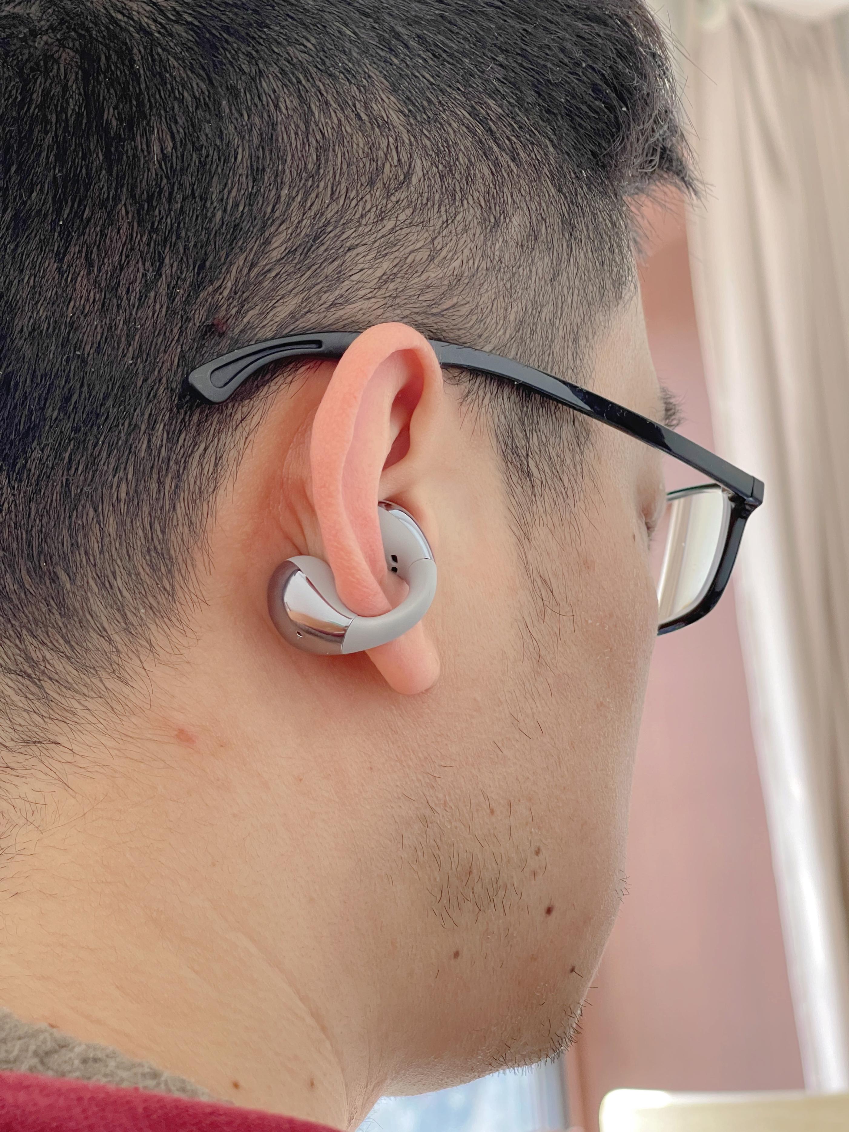相比传统耳机需要把耳塞塞进耳道,C30S只要像挂耳环一样,轻轻让耳夹卡住耳廓即可。佩戴时不会感到耳道被堵住,也没有耳机膈到耳朵里的闷胀感,很大程度上解决了我们对入耳式耳机的疲劳与排斥问题。