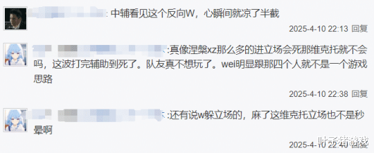 不少玩家调侃已经没有人类了:“中辅看见这个反向W,心瞬间就凉了半截”,“wei明显跟那四个人就不是一个游戏思路”,“明显熟练度不够,这波应该往上W用技能宽度晕同时人拉开立场”……