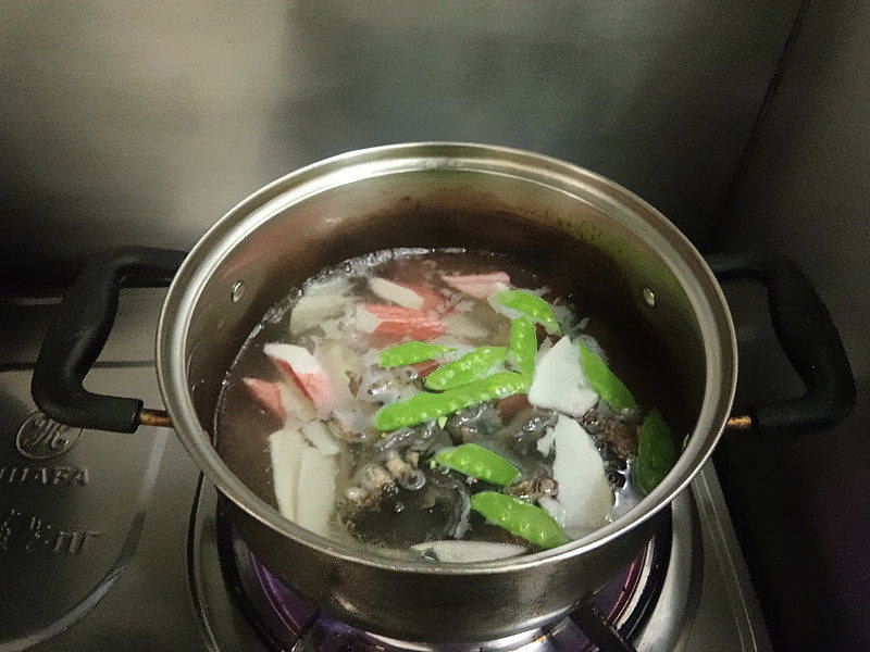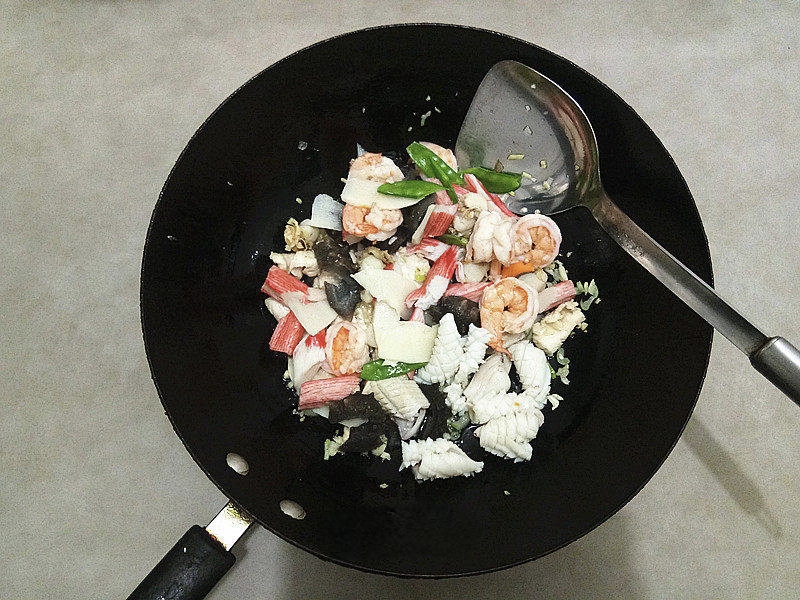 1、海鲜食材可以和香菇蘑菇一起焯熟,这样既省时又省力。