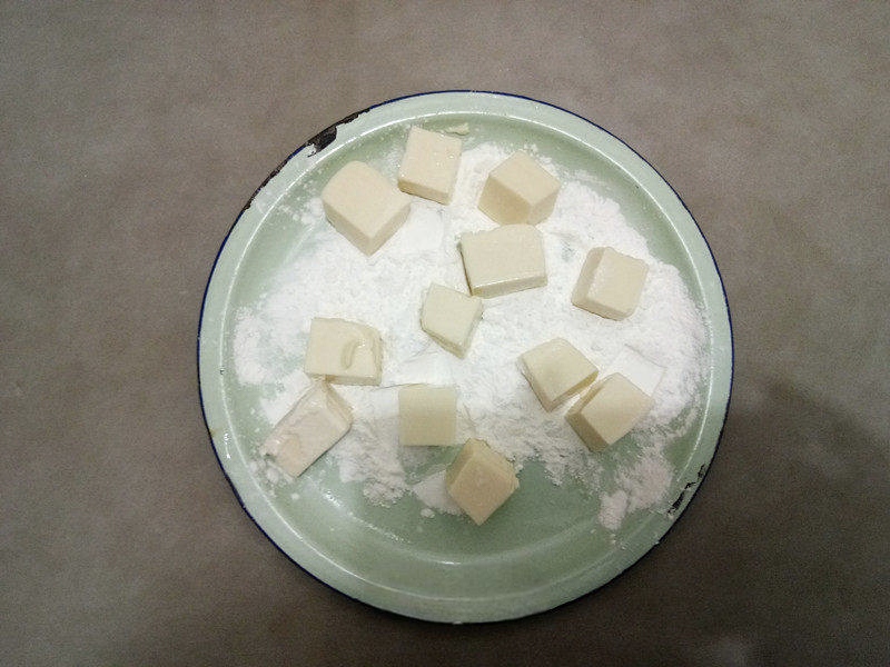 5. 切好的豆腐均匀的蘸上一层干淀粉。