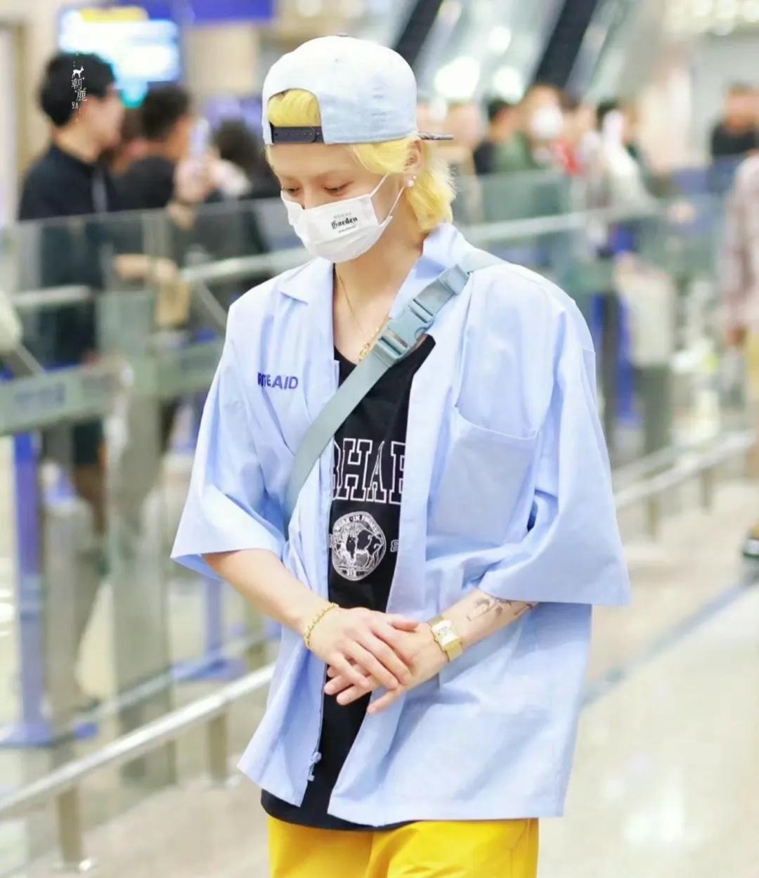 有人说,鹿晗的穿搭就像是一场视觉盛宴,虽然没有奢侈品的光环,但却充满了个性和风格。这样的搭配不仅让他在人群中显得格外显眼,也让粉丝们感叹他的时尚嗅觉。染着黄色头发,戴着鸭舌帽和口罩,鹿晗的造型在机场人群中格外显眼,难以不被注意。