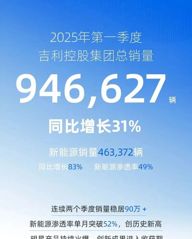 但雷克萨斯并不是唯一在拼搏的品牌。近日,吉利控股集团公布了一季度销量94.66万辆的骄人业绩,其中新能源汽车的销量更是达到463,372辆,同比增长达83%。这一数字背后折射出的,不仅是吉利品牌的市场认可度日渐提升,还有科技进步和消费者对绿色出行的需求在逐渐上升。数据显示,吉利新能源汽车的渗透率已经接近49%,这一成就不仅让业内人士惊叹,也让消费者对未来出行方式产生了新的期待。