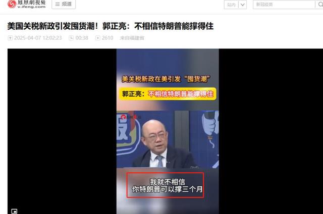 登载于凤凰网视频2025年04月07日关于美国关税新政在其国内引发囤货潮,郭正亮:不相信特朗普能撑得住的报道