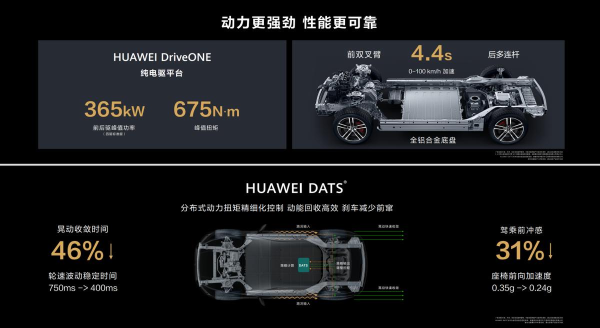 平台决定起步高度。在华为深度赋能下,AITO问界M5系列有着与生俱来的强悍性能。问界M5标准版四驱车型零百加速时间仅需4.4秒,爆发力超强,不管是在城市间穿梭,还是远离城市享受纯粹的驾驶快感,它都能给足你勇气。同时,升级的HUAWEI DATS动态自适应扭矩系统,可以使得驾乘前冲感降低31%,晃动收敛时间减少46%,舒适性大大提升。,再加上全系标配的前双叉臂、后多连杆全铝合金底盘,即便是在颠簸、湿滑弯道行驶,也能做到平稳安全,还有舒适性的提升。